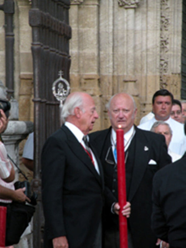 Tras el paso de la virgen figuraba el arzobispo de Sevilla monseñor Juan José Asenjo, el obispo auxiliar Santiago Gómez Sierra, y eldean de la Catedral Francisco Ortiz Gómez.