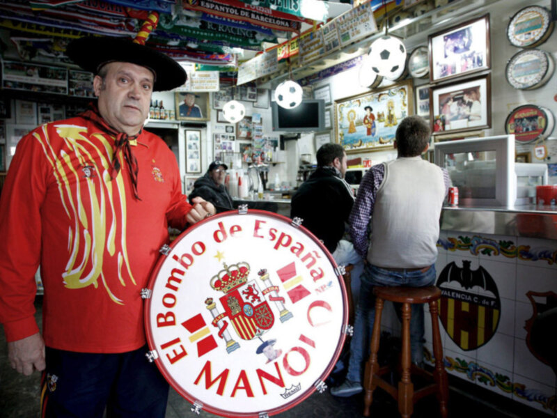 Con motivo del partido entre Colombia y España en la Condomina en Murcia unos desalmados roban el bombo de Manolo.