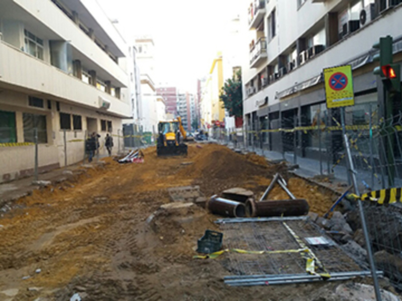 Las obras de la instalación del colector de saneamiento en calle Niebla obligan a realizar obras complementarias en las calles perpendiculares a Niebla. Se iniciaron las obras el pasado mes de Agosto. Las obras en acerados. el ruido y el polvo afectan a los pacientes que acuden a diario al Ambulatorio.