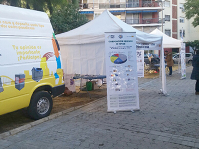 Una furgoneta con materiales de reciclaje y una exposición móvil recorre Sevilla informando a los ciudadanos de la necesidad de reciclar