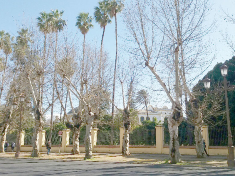 El vendaval de lluvia y viento causa unos daños muy importantes en el patrimonio verde de Sevilla.