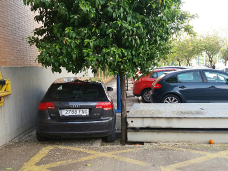 El mal diseño del alcorque, su mala ubicación y el depósito de enseres en la vía pública son causas agravantes. La falta de aparcamiento y la poca educación ambiental de algunos conductores provoca agresiones al arbolado que causan pequeñas lesiones leves, graves y muy graves, que al cabo de unos años pueden provocar la caída de ramas o incluso del árbol, provocando accidentes a los ciudadanos.