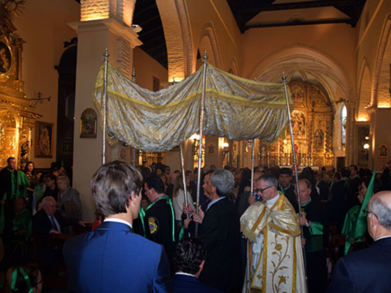 Al término de la celebración litúrgica se celebró la procesión claustral con Su Divina Majestad bajo palio hasta el Monumento Eucarístico, por el mismo Rvdo. Y manifestado por la comunidad de las Hermandades de la localidad ribereña.