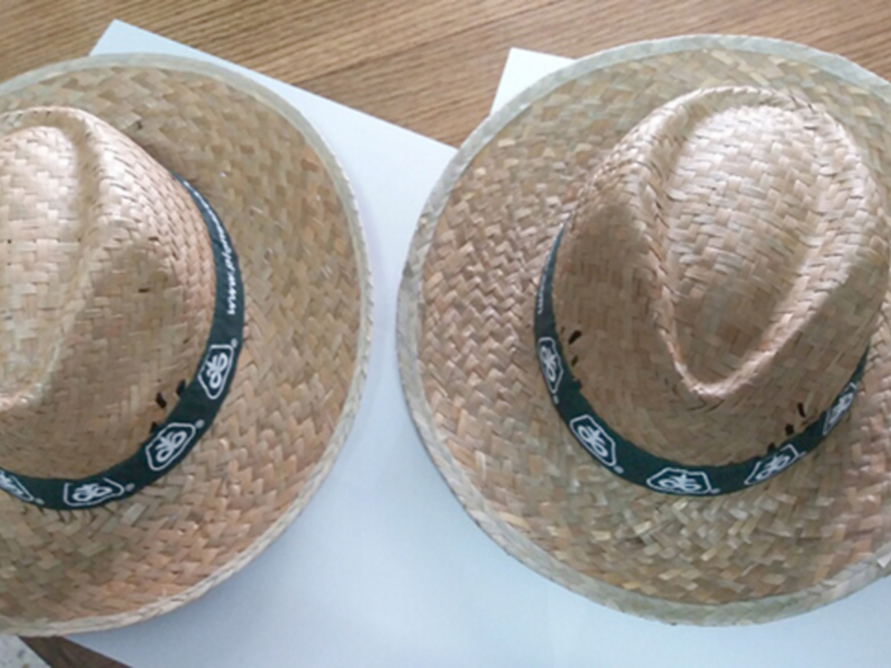 Un sombrero fabricado a mano con hojas de palmito (Chamaerops humilis). Hecho con la técnica de la “empleita” que se define como “ una tira, o venda elaborada de esparto, palma o pita que una vez cosida se emplea para elaborar un sombrero, estera, petaca o cualquier objeto semejante. El vocablo “empleita” etimológicamente se compone del prefijo “em” por “en” dentro de o sobre y del sustantivo “pleita” con ella del mozárabe “pléhta” y del latín popular “plecta” entrelazamiento. Confort, aireación y producto reciclado y reciclable.