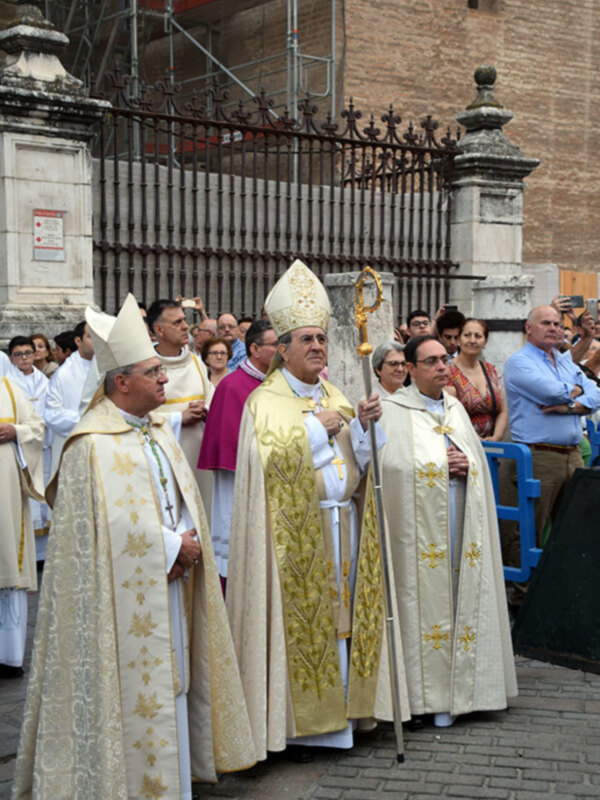 En esta fecha tan señalada la Virgen de los Reyes, patrona de Sevilla, procesiona por el centro de la ciudad. A las 07:30 horas se inicio de la procesión, por el perímetro de las naves de la Catedral. La procesión es seguida por un cortejo de unas trescientas personas formado por autoridades religiosas, municipales, civiles y militares. Acompañan a la Virgen de los Reyes en su recorrido, donde se realizaron cuatro estaciones: unas “paradas” con una serie de actos religiosos. A las 10:00 horas se ofició la Solemne Misa Estacional, presidida por el Arzobispo auxiliar el simpático Santiago Gómez Sierra de Sevilla.