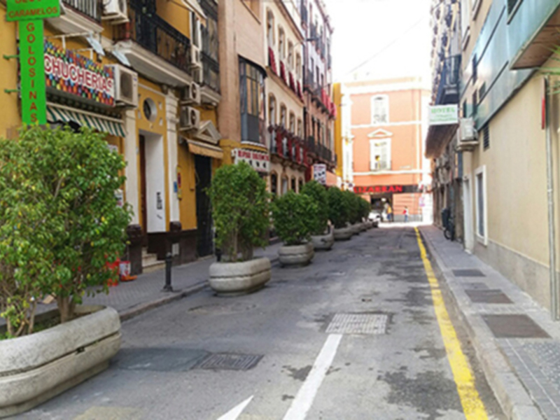 Los maceteros son un recurso que se utiliza frecuentemente en los municipios como elemento decorativo y disuasorio para cortar el paso o canalizarlo. Donde no hay parterres y se quiere embellecer un punto del espacio público se ubica un macetero. Su uso debe estar estudiado para evitar que se utilice de forma indiscriminada o no apropiada y se convierte en un elemento que afecta y distorsiona el paisaje urbano. Los errores más frecuentes: plantar especies como Ficus en pequeños maceteros, ubicar maceteros que por su tamaño, color y forma distorsionan el paisaje urbano, hacer cordones lineales repetitivos, utilizar maceteros con forma de prisma rectangular o cuadrangular con aristas y esquinas que son un riesgo para los peatones. Hay que tener en cuenta que los peatones se sientan, se apoyan, se suben a los maceteros.