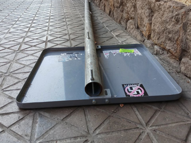 Pueden los ciudadanos tener un riesgo de accidente al circular por las aceras debido a que hay señales caídas, que permanecen durante días abandonadas?. Es frecuente ver señales caídas en los acerados, algunas veces por vandalismo. La mayor parte de las veces es debido a que la cimentación y fijación en el acerado no es la suficiente para soportar la exposición a la que está sometida. El tránsito diario de personas, los golpes y apoyos hacen que veamos señales inclinadas que terminan cayendo al suelo. Las señales verticales no pueden inclinarse porque una persona se apoye simplemente. La normativa aconseja que en acerados estrechos, la señal no sea vertical y vaya sujeta a la pared o fachada, si es posible. La señal debe estar ubicada, como mínimo a una distancia de 30 cm del borde del acerado. Las señales están normalizadas y lo que parece que falla es la cimentación de la misma.