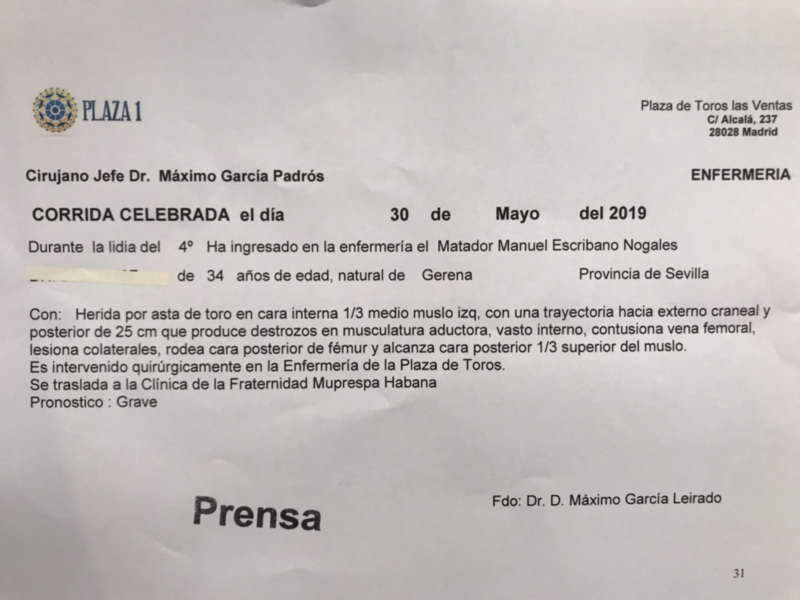 Parte médico Manuel Escribano