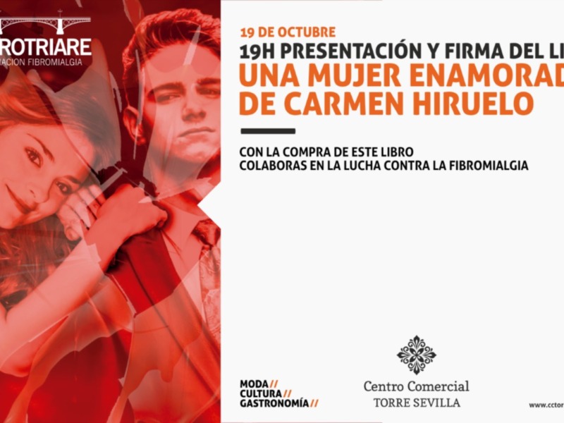 El próximo lunes 19 de octubre FNAC TORRE SEVILLA, en colaboración con el Centro Comercial TORRE SEVILLA, acogerá la presentación del libro “Una mujer enamorada” a cargo de Carmen Hiruelo Aguilar, presidenta de la Asociación de Personas afectadas de Fibromialgia, Síndrome Fatiga Crónica y Sensibilidad Química Múltiple FIBROTRIARE Triana-Los Remedios.