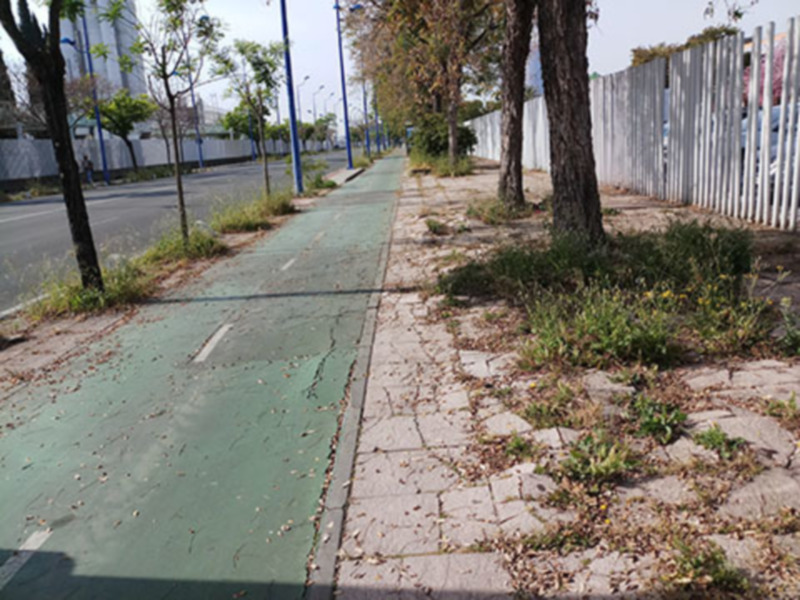 Un riesgo de accidente para los peatones, circular por acerados en malas condiciones, Camino de los Descubrimientos, Torneo, Resolana etc..