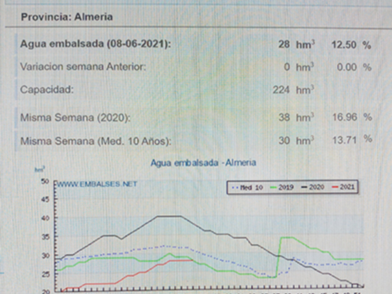 El nivel de agua embalsada en Almería al 12,5%. Estamos al final de un ciclo de sequía.