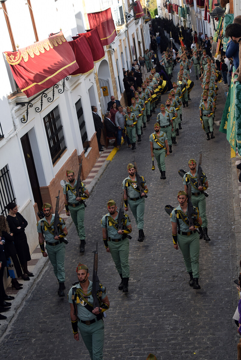 El Tercio Duque de Alba, 2º de la Legión, participó en la salidas procesionales para el Viernes Santo en Alcalá del Río, acompañando a la Real Hermandad de la Soledad, de esta localidad sevillana