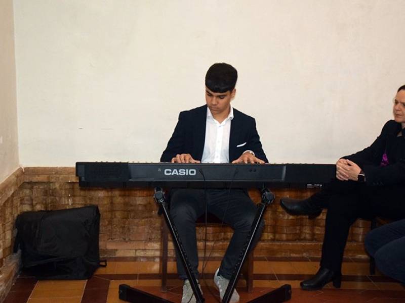 Como colofón, el pregonero, los saeteros,el joven pianista y la Banda de Cornetas y Tambores Esencia recibieron un recuerdo conmemorativo en forma de placa o insignia, en reconocimiento y agradecimiento a su destacada participación en esta significativa cita cofrade.