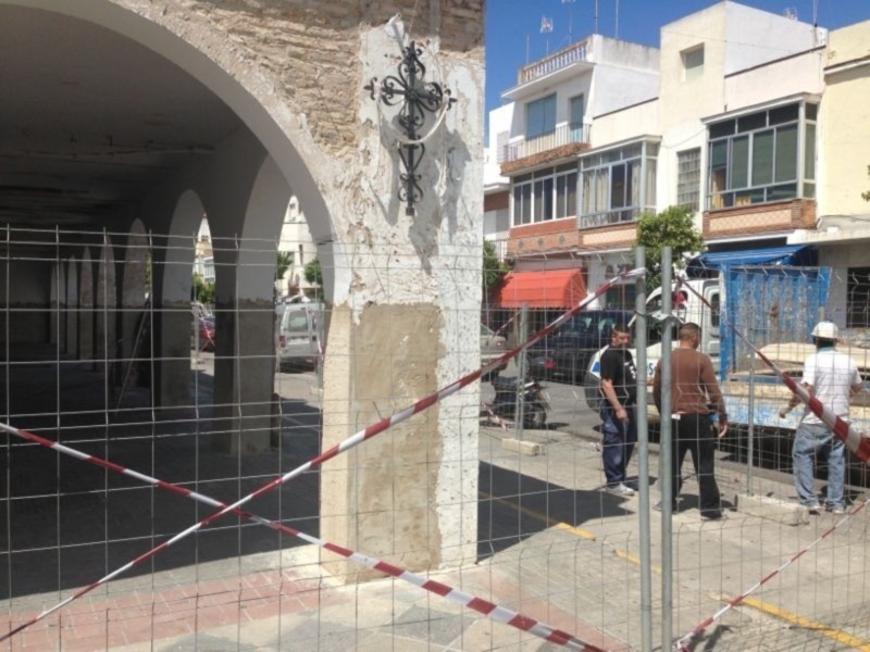 Chipiona, 20 de mayo de 2013.- El Ayuntamiento de Chipiona ha abordado el saneamiento de la techumbre exterior del Mercado de Abastos, fase fundamental de las obras de emergencia acometidas.