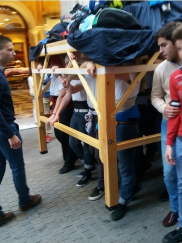 Ayer los peatones que circulaban por la calle O ddonell en el centro de Sevilla se llevaron la sorpresa de ver a un grupo de costaleros que ya han empezado a preparar la Semana Santa de 2017.