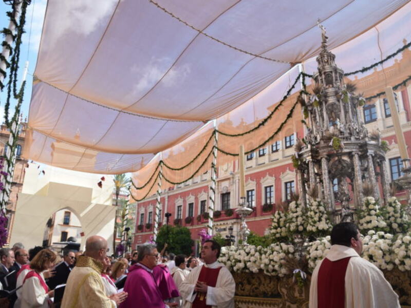 El jueves 26 de mayo, fue festividad religiosa y fiesta local en Sevilla, una fiesta que se mantiene en pocas ciudades española, como Granada y Toledo. En uno de los días más importante en la ciudad de la Giralda. En Sevilla tuvo lugar la procesión del Corpus Christi. Miles de sevillano se dieron cita en el centro del casco antiguo de la ciudad hispalense para seguir esta procesión eucarística, que los sevillanos consideran una de sus fiestas más grandes.