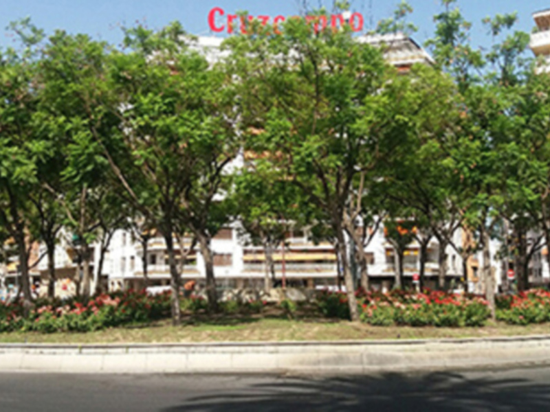Las rotondas han entrado en el urbanismo tomando un papel regulador del tráfico. Estas isletas normalmente se ajardinan. Es importante tener en cuenta la dificultad de mantenimiento de estos espacios. En algunos municipios estas rotondas e isletas se convierten en pequeños parques, con arbolado, fuentes, arbustos y pradera. La rotonda por su emplazamiento está ubicada en el eje de la via pública y es un punto visual importante. Frecuentemente vemos rotondas con plantaciones desproporcionadas. Foto Plaza de Cuba, Sevilla.