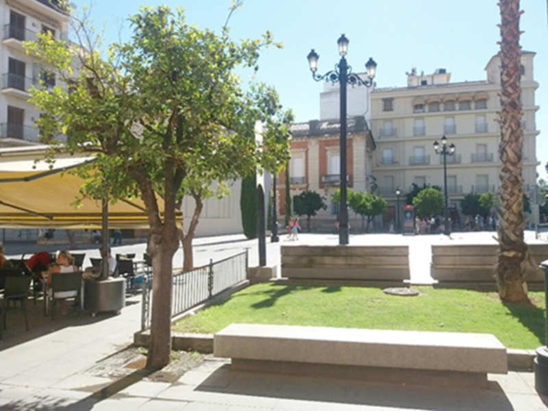 El riego del arbolado es imprescindible al menos durante los primeros años. Dependiendo de la especie y del clima, puede ser necesario seguir regando al menos 2 o 3 años después de la plantación. En el caso del naranjo hay que tener en cuenta que es una especie muy sensible al exceso de agua. Por esta circunstancia el naranjo puede presentar Gomosis. Si cometemos el error de plantar naranjos en un césped y regamos abundantemente para mantener en buen estado el césped, será difícil que el naranjo perviva. No obstante es muy importante que todo el arbolado plantado tanto en parterres como en alcorques tenga su sistema de drenaje individual y colectivo al ser posible. En el caso de la foto, se puede apreciar encharcamiento del alcorque por motivo del riego del césped. Probablemente el difusor de riego (situado en el punto más bajo del parterre) más próximo al árbol no tenga válvula anti drenaje o esté estropeada. Sevilla 20 de Agosto de 2016.