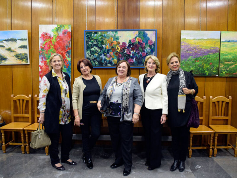 En esta exposición encontramos desde los dulces abstractos a los paisajes ilusionistas de Adriana, pasando por el coraje de las gitanas y flores de Shamann a los paisajes históricos, primaverales y vigorosos de Roció.