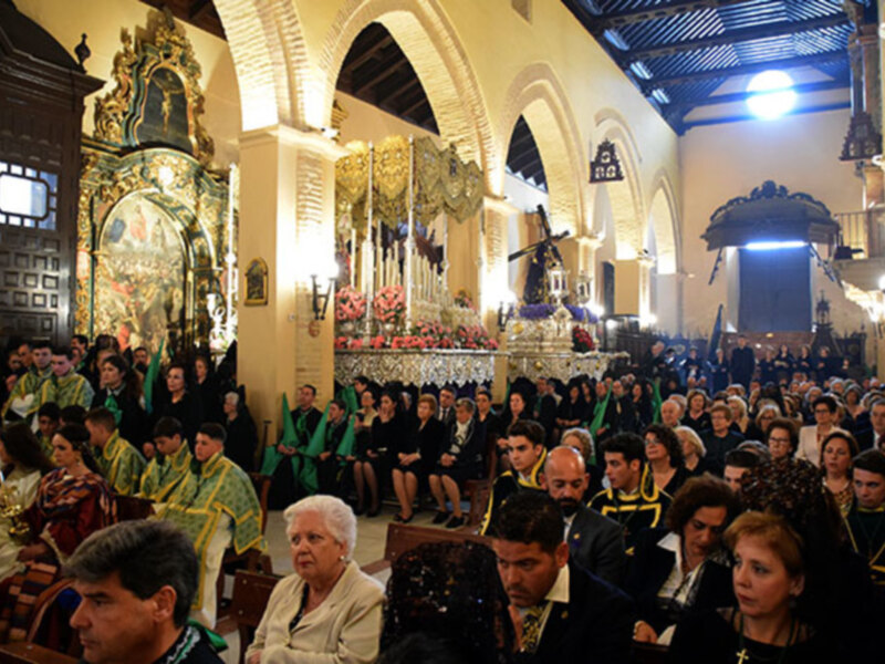 Los Oficios del Jueves Santo empezaron a las 15´45, con la misa In Coena Domini (latín: en la cena del Señor), organizado por la Parroquia y en la que se conmemora la institución de la Eucaristía. Estando la Predicación a cargo del Rvdo. Fernando Reyes Rico, párroco de la localidad y director espiritual de la Hermandad de la Vera-cruz de la corporación del Jueves Santo.