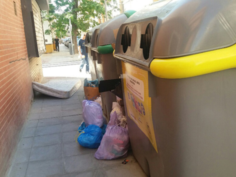La ubicación de contenedores se debe hacer de forma planificada estudiando las opciones y respetando las circulaciones de los transeúntes, para que los ciudadanos puedan circular por las aceras con normalidad. Los cambios improvisados de contendores orgánicos por una estación de contenedores de reciclado genera confusión en el ciudadano que opta por abandonar la basura de orgánico a pie del set de reciclado. Por esta acera no puede pasar un discapacitado en silla de ruedas cuando hay bolsas abandonadas. Foto calle Miño.