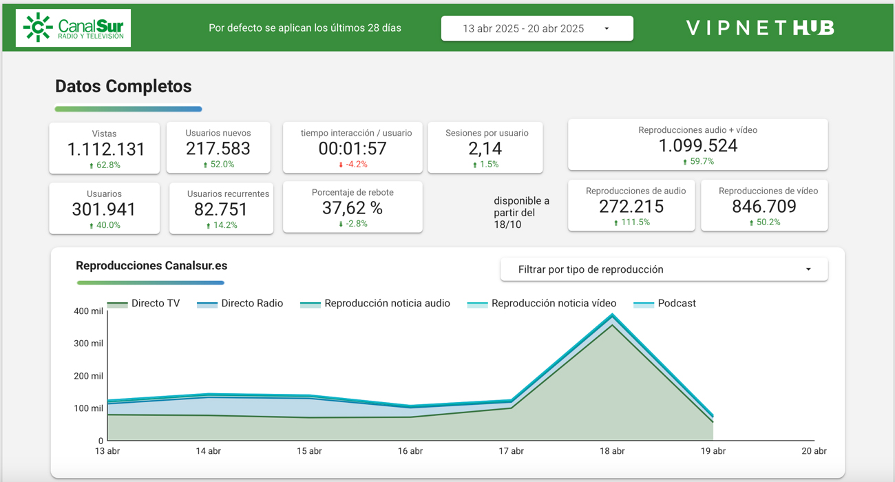 Los frontales digitales de CanalSur Radio y TV han cerrado cifras récord durante esta Semana Santa. Mientras que la web editorial CanalSur.es cerró con más de 1.112.131 vistas y más de 300.000 usuarios únicos, la plataforma CanalSur Más alcanzó de Domingo de Ramos a Domingo de Resurrección la cifra de 458.400 sesiones totales. A esto hay que añadir que el canal de Youtube de @CanalSur superó la cifra de 1.85 millones de visualizaciones.