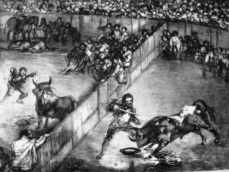 GOYA lo supo bien. Captó los tercios, las escenas en que Vida y Muerte se subliman al máximo. No sólo retrató a PEDRO y JOSÉ ROMERO, PEPE HILLO, MARIANA CEBALLOS ,una de las pocas mujeres toreras no sólo de su época; también banderilleros como JUANITO ALPAÑIZ o picaores como RENDÓN, personajes históricos imaginados como rejoneadores o lanceros como el emperador CARLOS V o el MORO GAZUL, sino pases, quites y quiebros como el D. TANCREDO, las plazas dobles, los saltos alrededor de la vara larga,…pero la expectación, la tensión, el miedo, la atracción del abismo y la Gloria de una buena faena, siguen siendo las mismas.