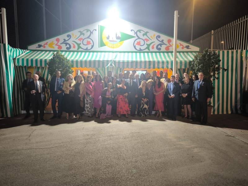 Este logro se debe a la gestión personal de su presidente Cayetano García de la Borbolla y su junta directiva que posan en la foto delante de la caseta .